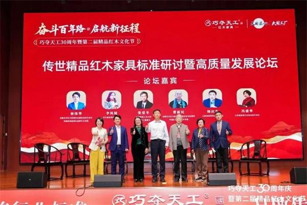 巧夺天工正在践行和实现的,正是在周年庆典《传世精品红木家具标准研讨暨高质量发展论坛》上与会专家一致认为的。红木品牌要以开放思维推动传统工艺与现代文明的对话融合,创新传承,才能实现红木家具从“传世精品”迈向“时代经典”的跨越式发展。