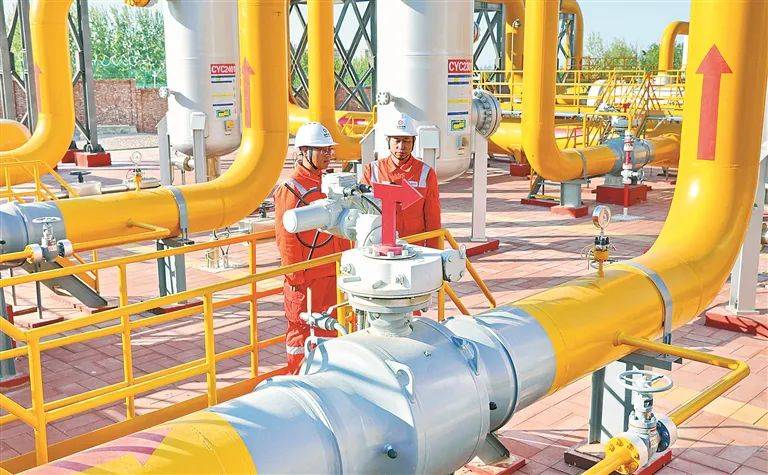 画里有线日,在河北省秦皇岛市海港区的国家管网北方管道秦皇岛联络压气站内,技术人员对天然气管道线路设备设施进行日常巡检。