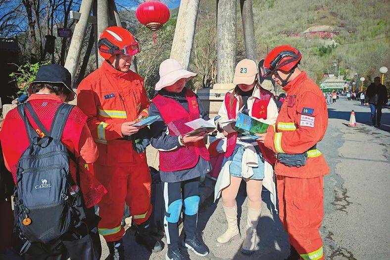 “五一”期间,国家消防救援局山西机动队伍驻五台山分队指战员在五台山殊像寺开展防火宣传。