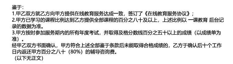 消费者杜女士于2023年2月报名一课教育的军队文职课程,并签订合同。合同明确约定“两年不过退费”条款,即若消费者在两年内未通过考试,机构需退还80%费用。2025年2月,两年期限已满,杜女士符合退费条件。但此后,一课教育对其退费诉求消极应对,并要求杜女士签订不公平的分期退费协议以拖延退款。杜女士坚持要求机构按合同约定,一次性退还7040元费用。